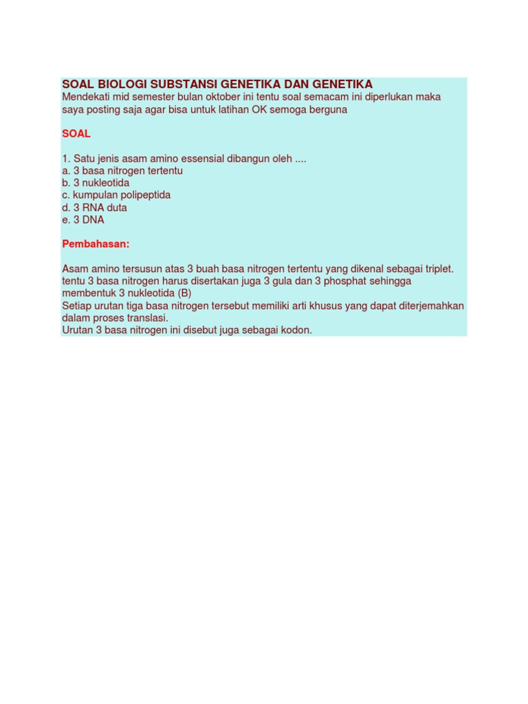 Kumpulan Soal Substansi Genetik Dan Pembahasan