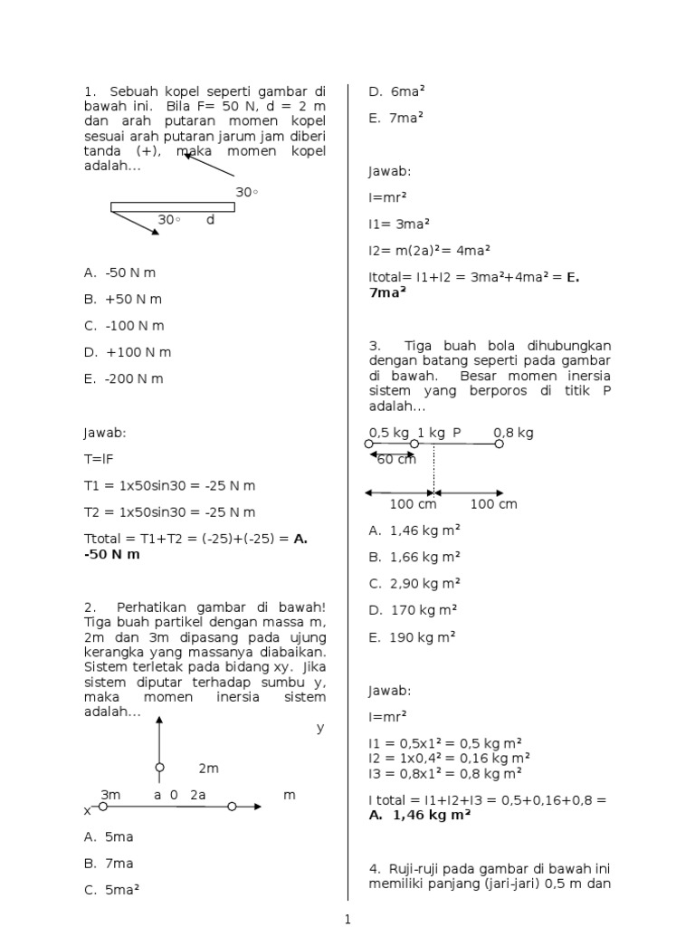 Soal Latihan Dinamika Rotasi Dan Kesetimbangan Benda Tegar