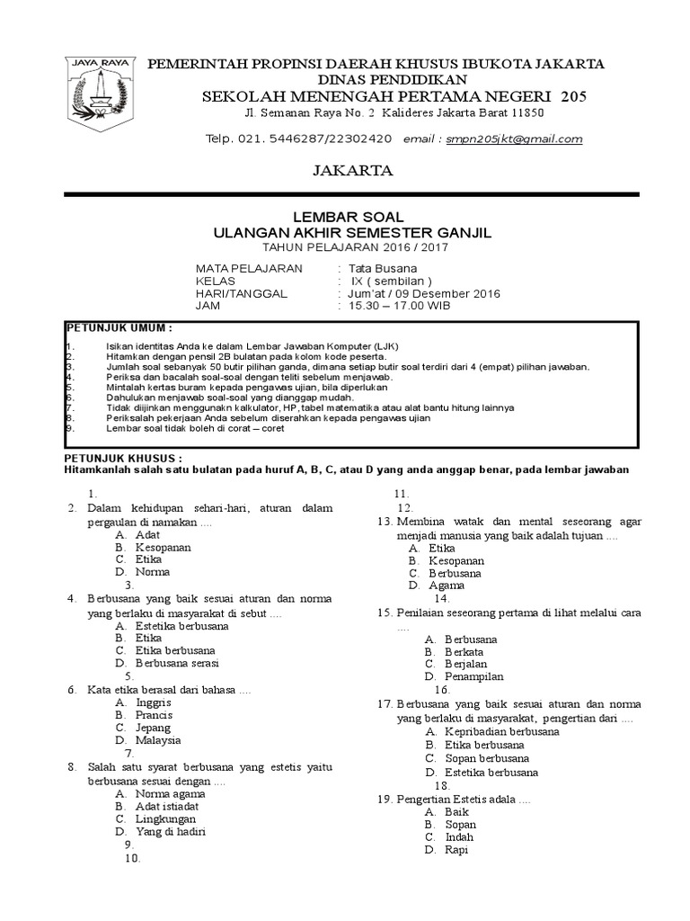 Soal Dan Kunci Jawaban Usbn C3 Tata Busana Jurnal Artefak